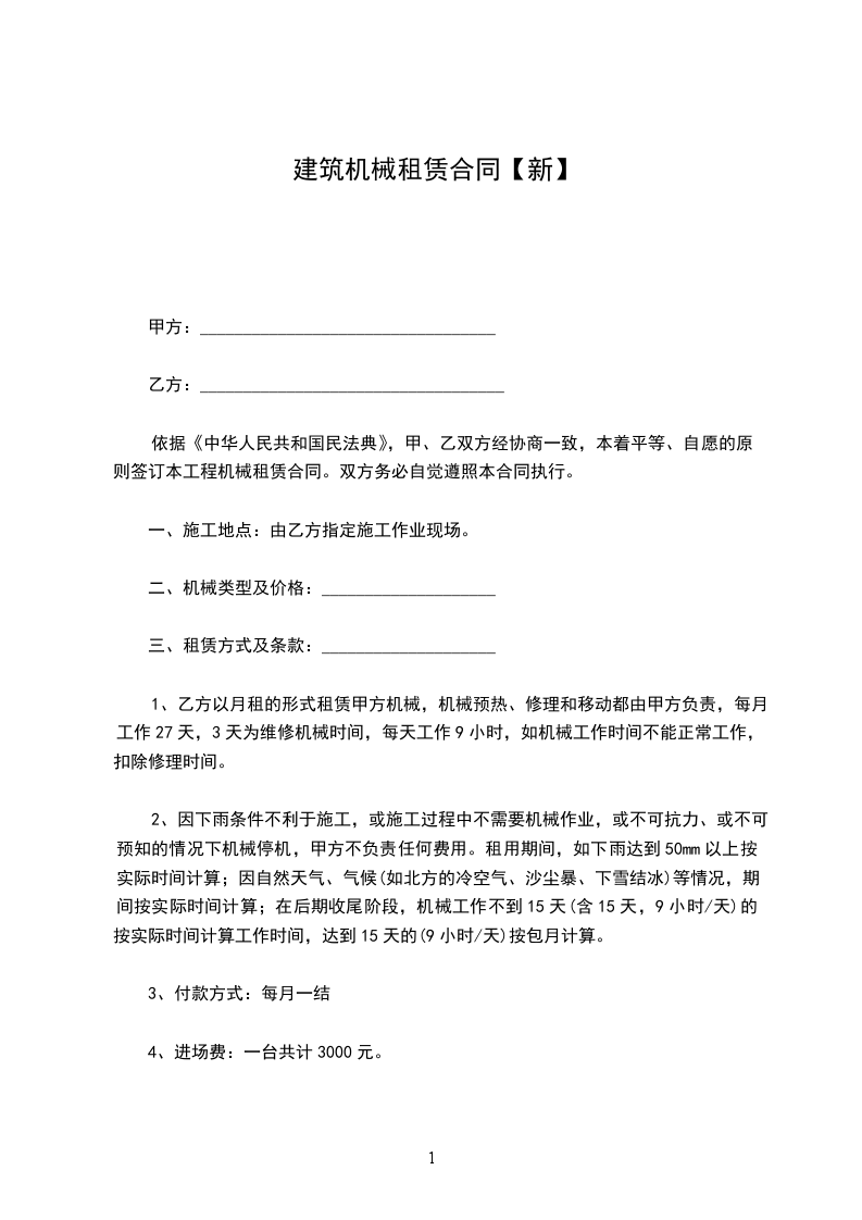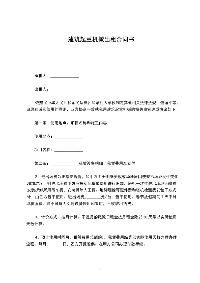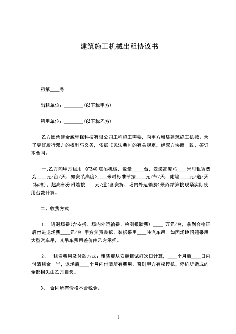 一、乙方因承建工程,施工需要租用甲方______,甲方同意租借。因此,双方需共同遵守本合同的各项条款及规定。