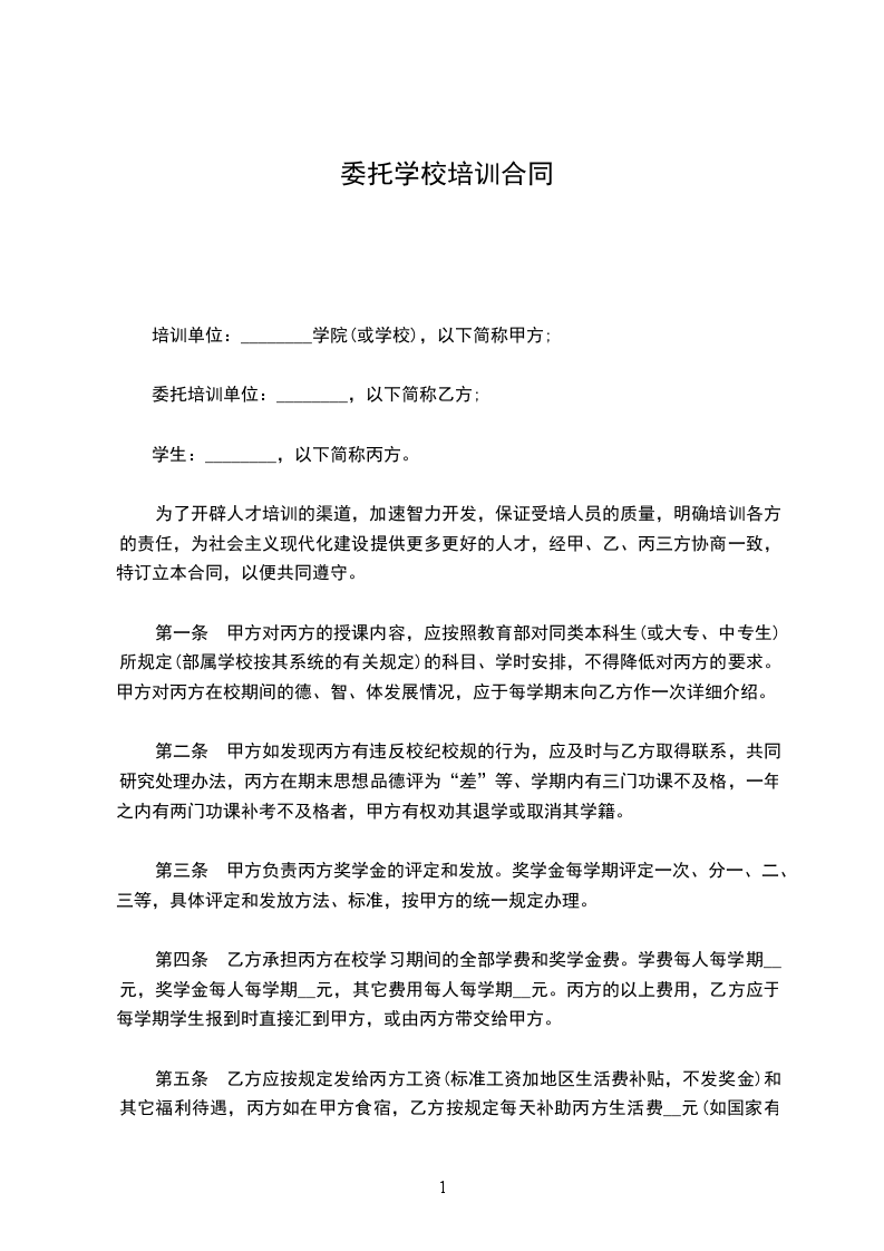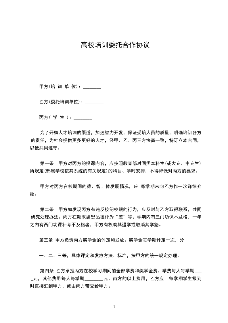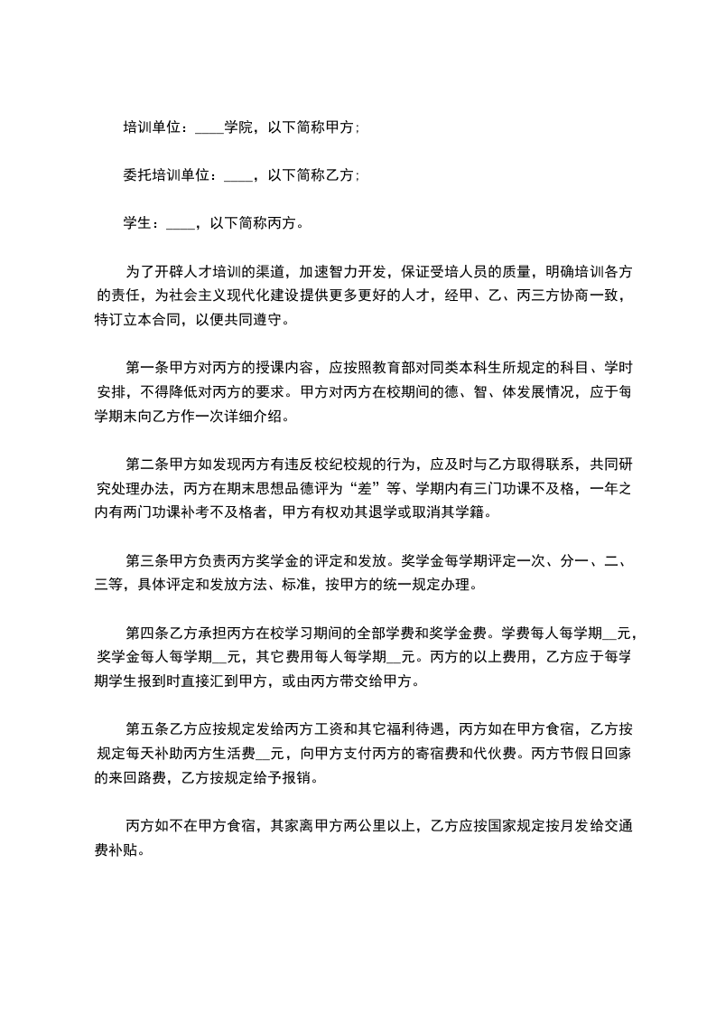 为了开辟人才培训的渠道,加速智力开发,保证受培人员的质量,明确培训各方的责任,为社会主义现代化建设提供更多更好的人才,经甲、乙、丙三方协商一致,特订立本合同,以便共同遵守。