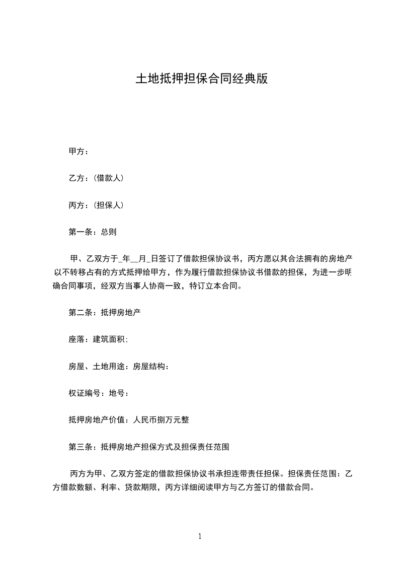 第一条为了确保甲、乙双方于____年____月___日已达成的《合同》(以下简称为主合同)的履行,甲方愿意以其有权处分并拥有使用权的位于____市____镇,面积为_____亩的国有土地使用权(以下简称为抵押物)的全部权利抵押给乙方,作为履行该主合同的担保。该抵押物名称、数量和价值等情况详见本合同的附件一。
