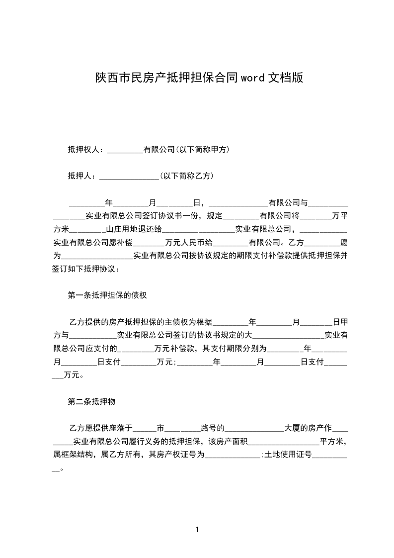 陕西市民房产抵押担保合同抵押权人:_________法定代表人:_________联系电话:_________