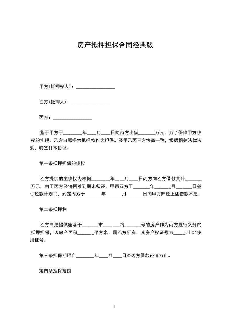 抵押权人:(以下称乙方)________地址:________电话:__________