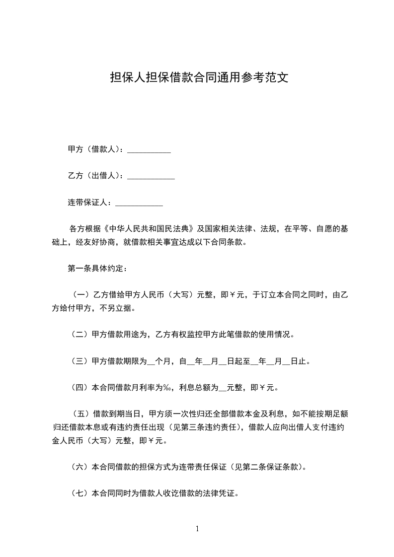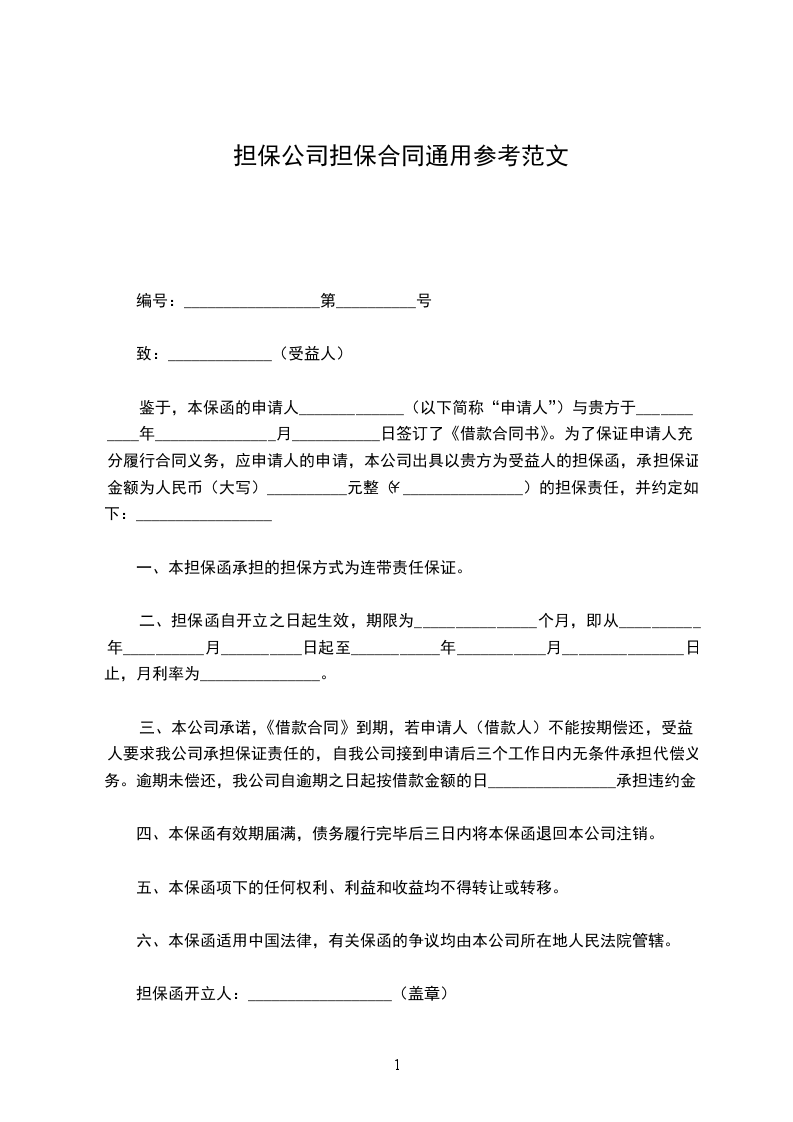 鉴于,本保函的申请人_____________(以下简称“申请人”)与贵方于___________年_______________月___________日签订了《借款合同书》。为了保证申请人充分履行合同义务,应申请人的申请,本公司出具以贵方为受益人的担保函,承担保证金额为人民币(大写)__________元整(¥_______________)的担保责任,并约定如下:_________________