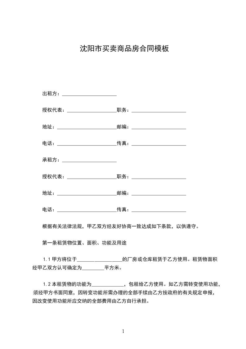 1.1甲方将位于__________________的厂房或仓库租赁于乙方使用。租赁物面积经甲乙双方认可确定为_________平方米。
