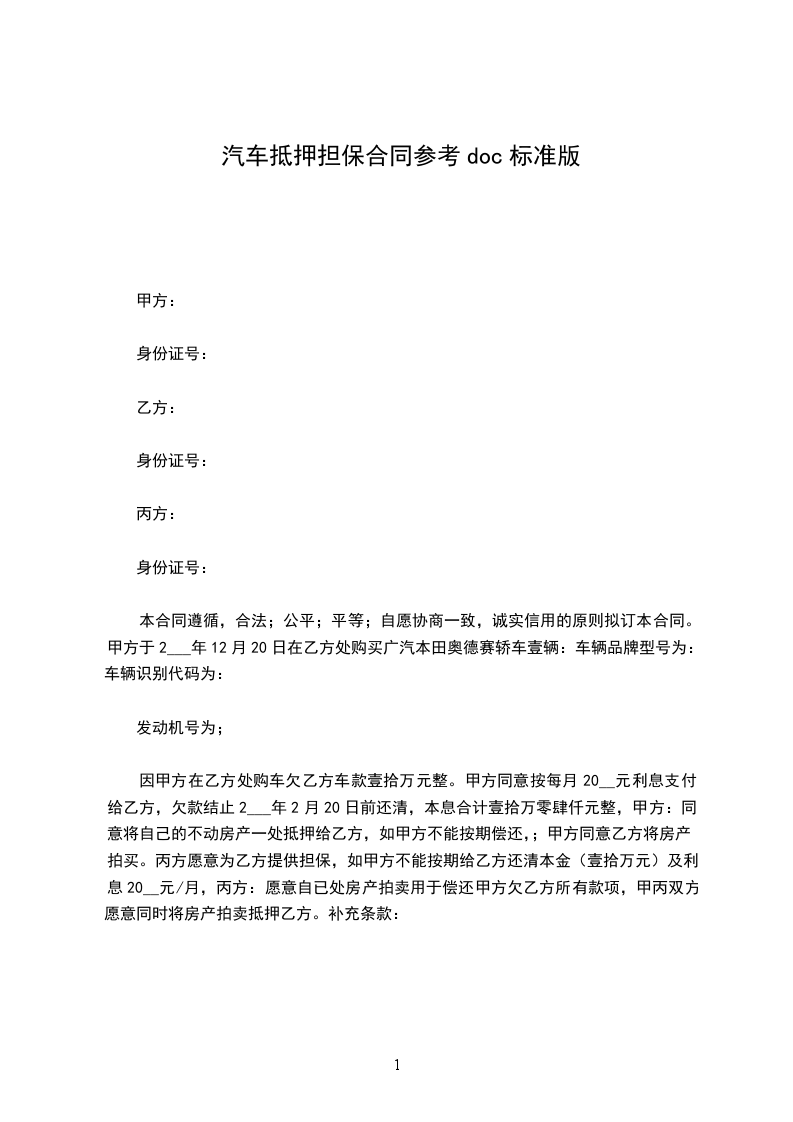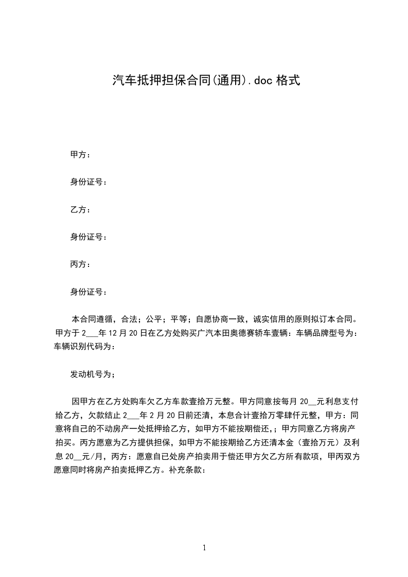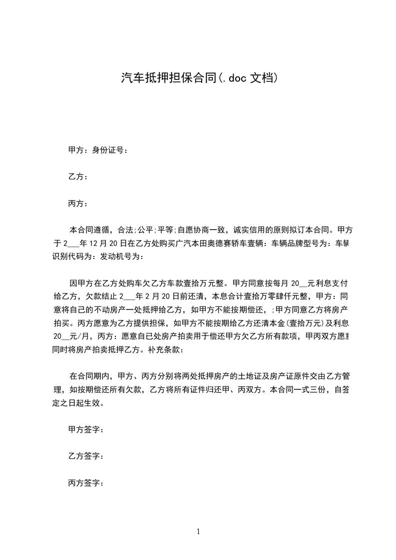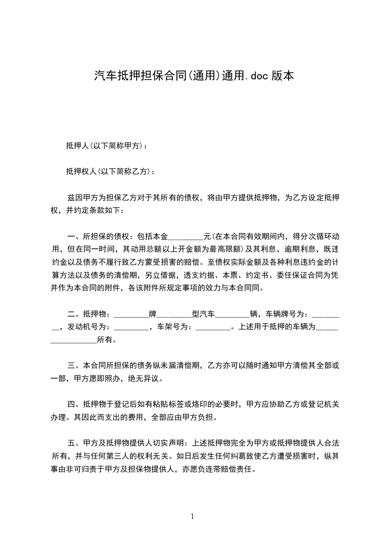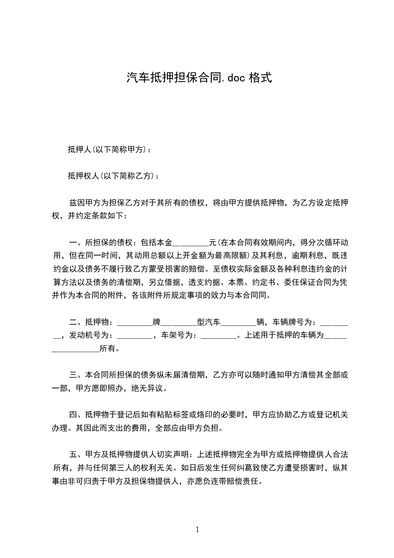 二、抵押物:_________牌_________型汽车_________辆,车辆牌号为:_________,发动机号为:_________,车架号为:_________。上述用于抵押的车辆为__________________所有。
