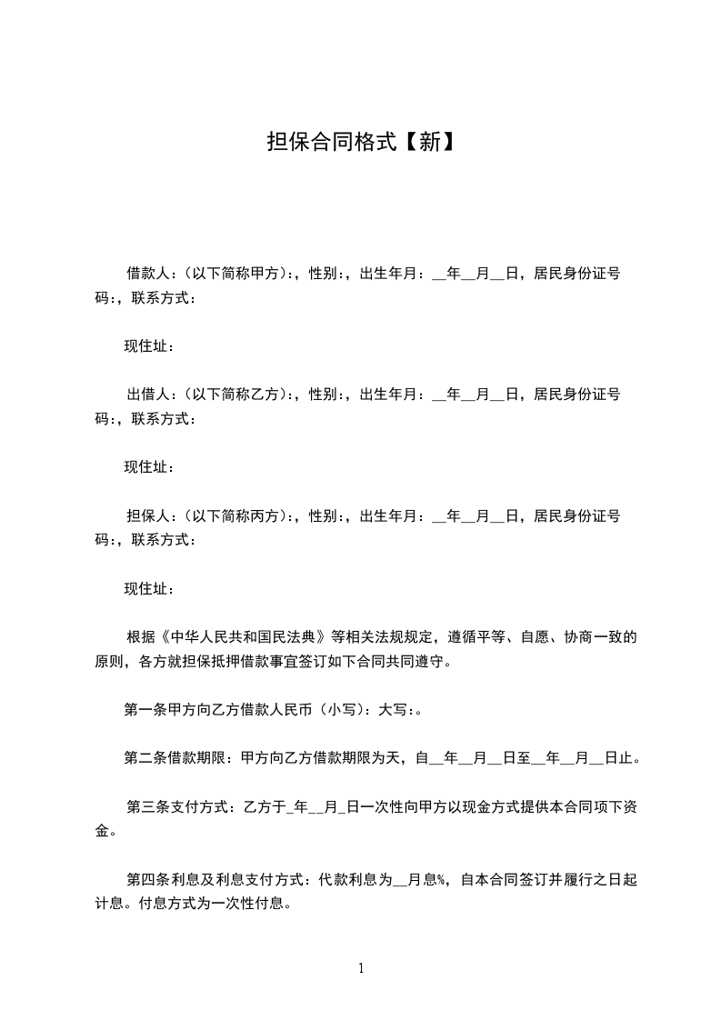 担保人:(以下简称丙方):,性别:,出生年月:__年__月__日,居民身份证号码:,联系方式: