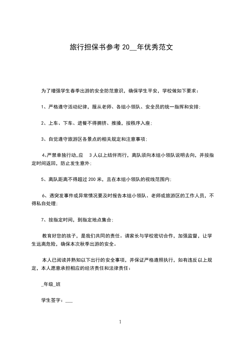 本人已阅读并熟知以下出行的安全事项,并保证严格遵照执行,如有违反以上规定,本人愿意承担相应的经济责任和法律责任: