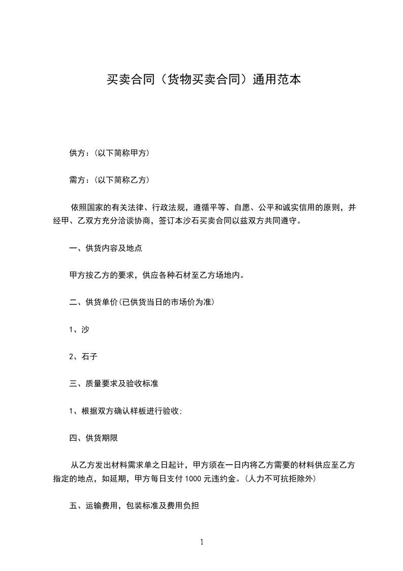 1、乙方所需的沙石全部从甲方购买。未经甲方书面同意,乙方不得从其他渠道购买沙石,否则乙方应向甲方支付违约金人民币壹拾万元,同时甲方有权单方解除沙石买卖合同。