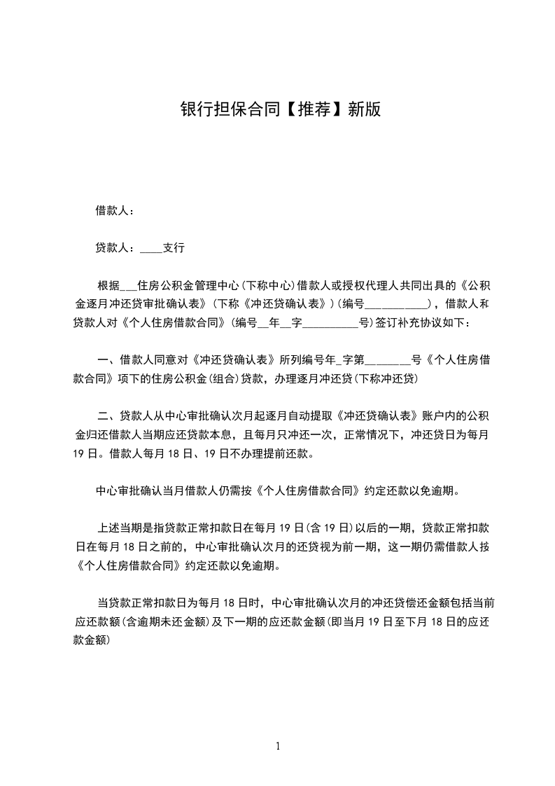 一、借款人同意对《冲还贷确认表》所列编号年_字第________号《个人住房借款合同》项下的住房公积金(组合)贷款,办理逐月冲还贷(下称冲还贷)