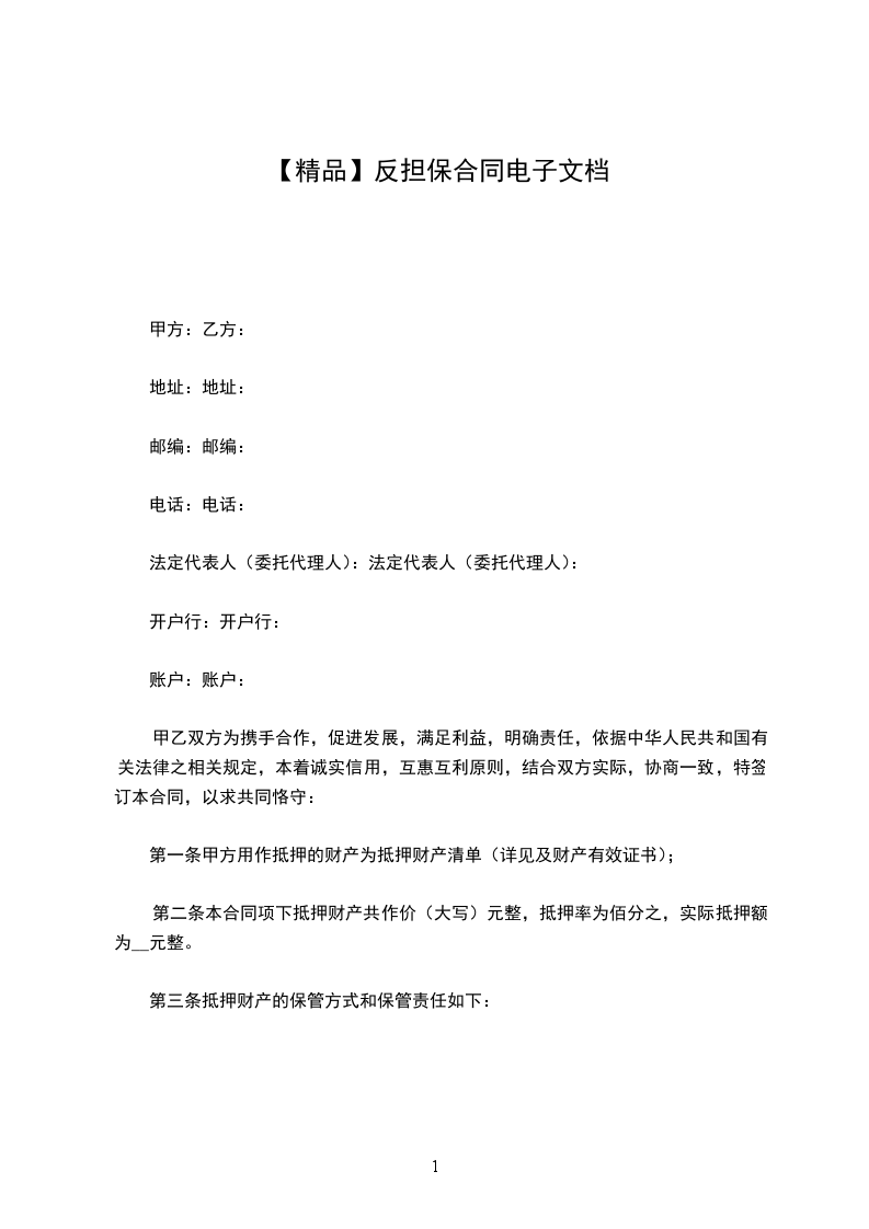 (一)当反担保资产价值明显降低时,乙方应按甲方的要求提供与降低部分价值相当的反担保资产,并办理相应的反担保手续。