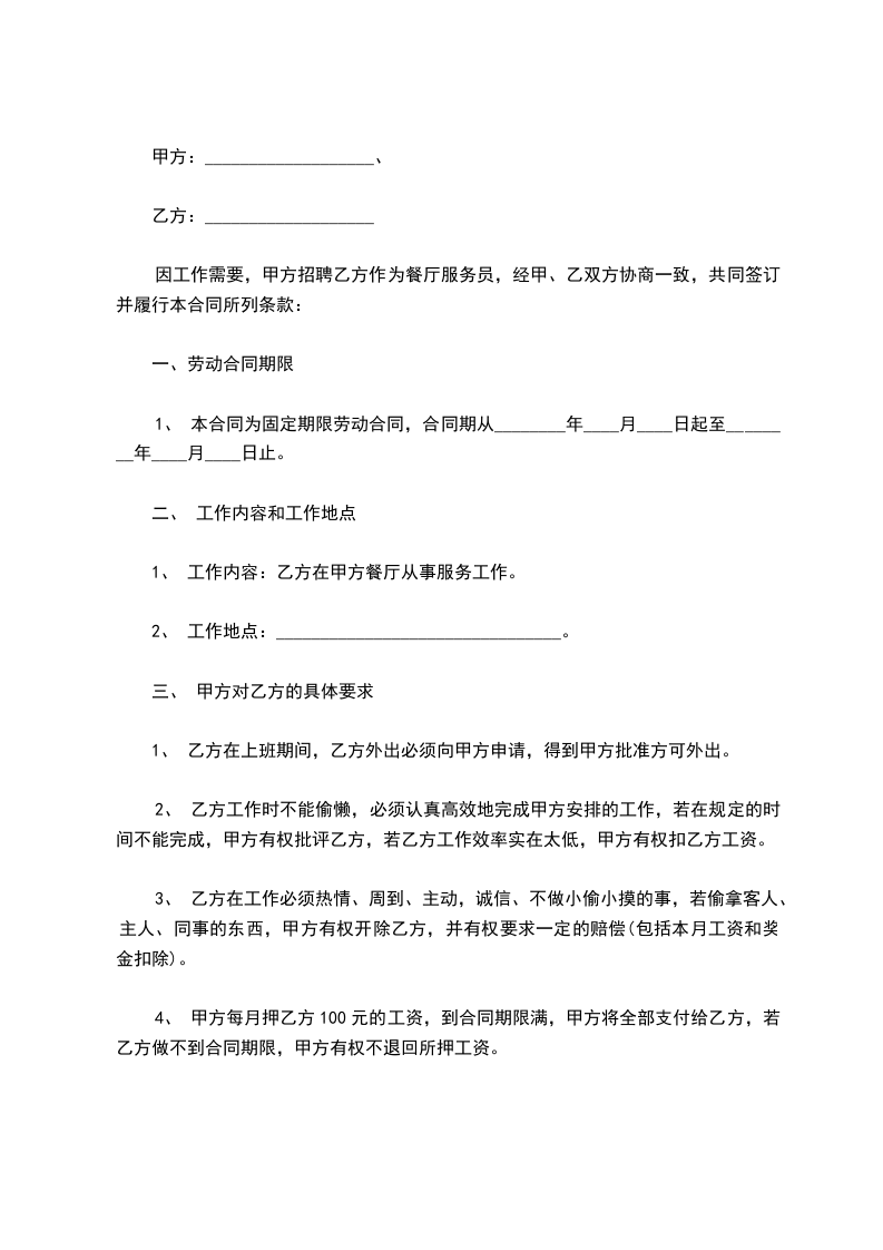 (3)甲方根据乙方的工作表现和酒店职位空缺情况,可给予乙方提供晋升的机会;当乙方对甲方的经济、效益等方面做出贡献时,甲方将给予相应的物质、精神奖励。