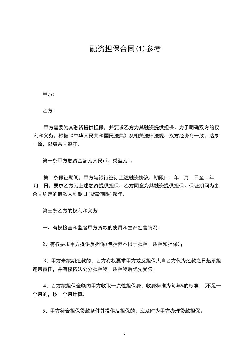 第一条甲方融资金额为人民币,类型为:。