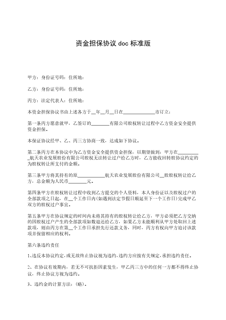 本担保协议(以下称“协议”)于___年___月___日由以下双方:作为委托人的(以下称“甲方”)作为担保人的(下称“乙方”)在签署。