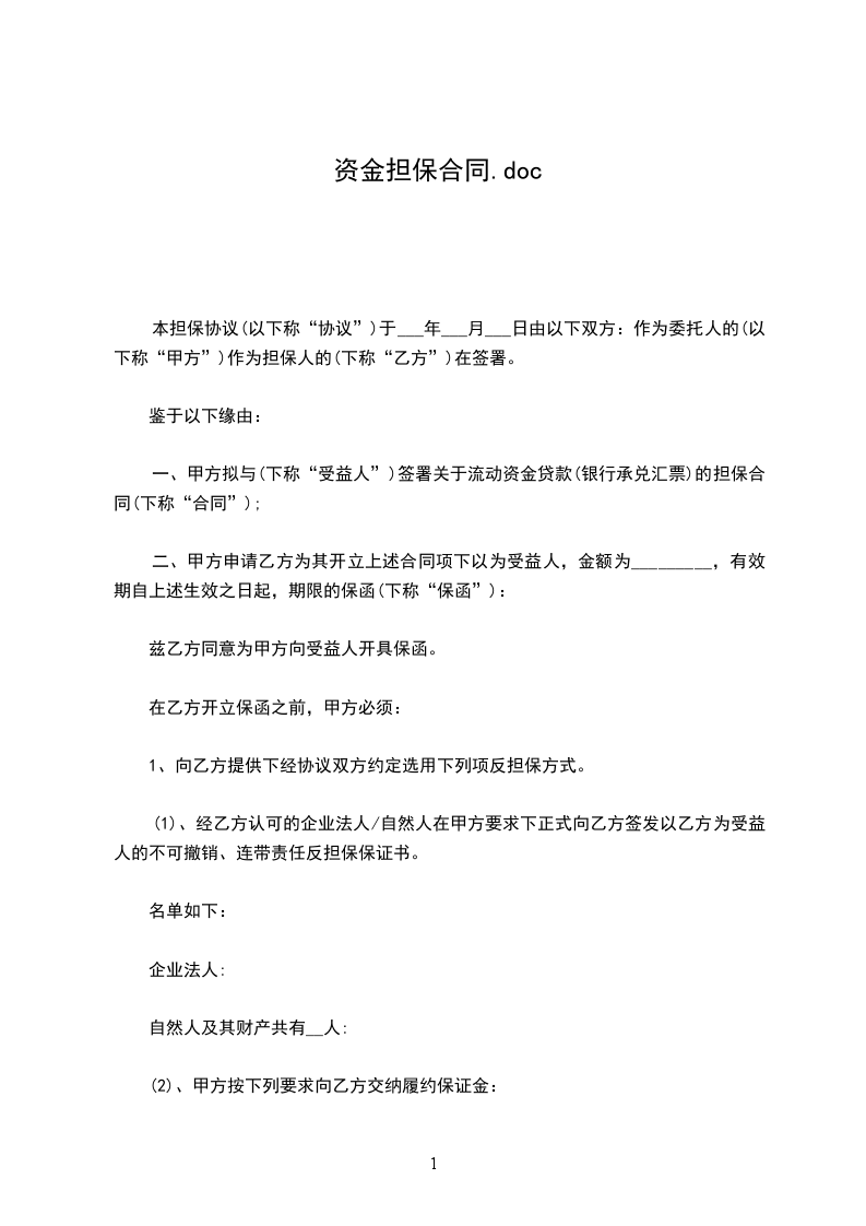 一、甲方拟与(下称“受益人”)签署关于流动资金贷款(银行承兑汇票)的担保合同(下称“合同”);