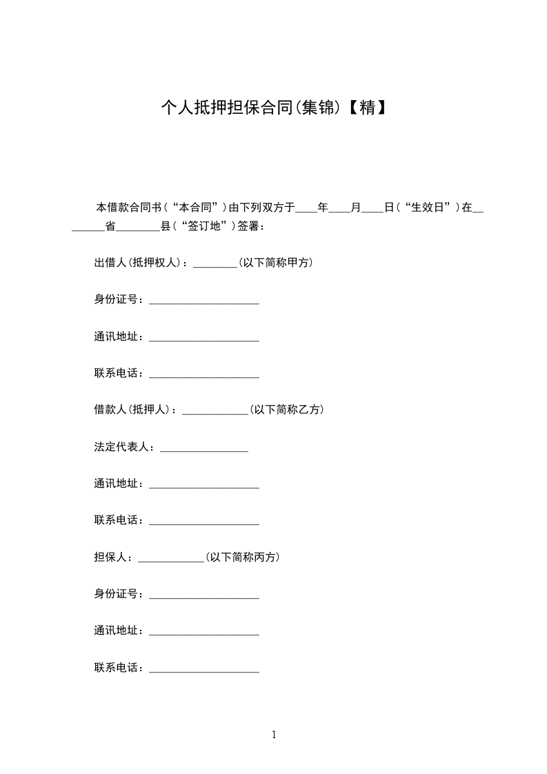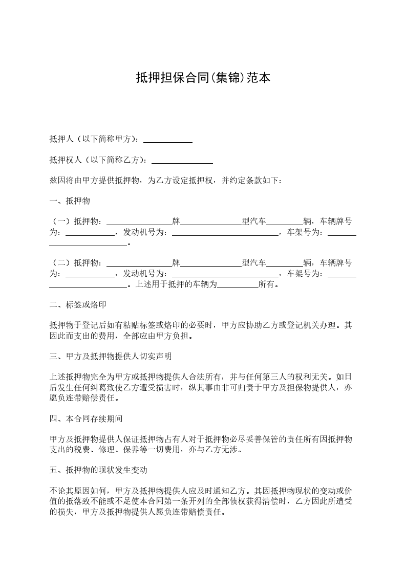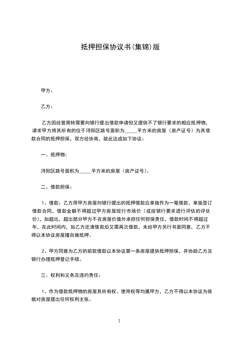 乙方为担保甲方与乙方之间于_____年____月____日所签订的借款合同的履行,在公平、自愿、平等协商的基础上乙方以自己享有相关处分权的财产为甲方提供抵押担保。
