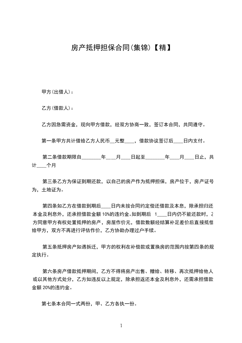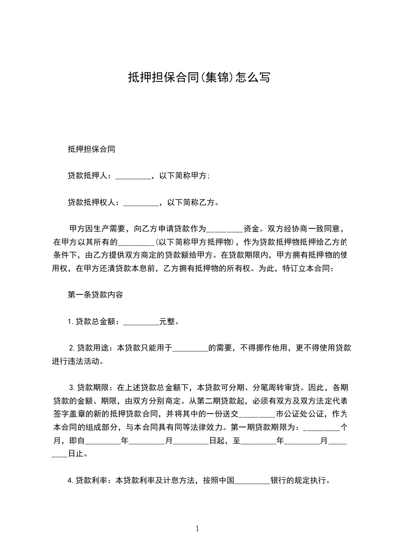 第一条、抵押担保的债权