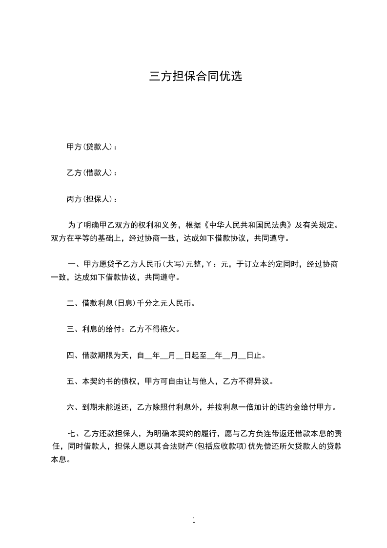 丙方根据甲方与乙方在________年________月________日签订的金额为________的购销合同向甲方提供担保,担保合同从属于购销合同,担保金额可累计,最终担保金额以财务结算金额为准。