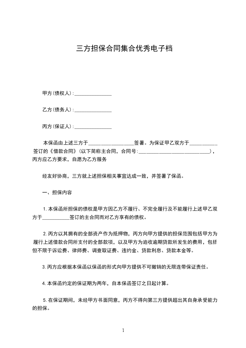 1、丙方担保乙方完全适当履行本合同从属的购销合同,否则由丙方承担连带担保责任。