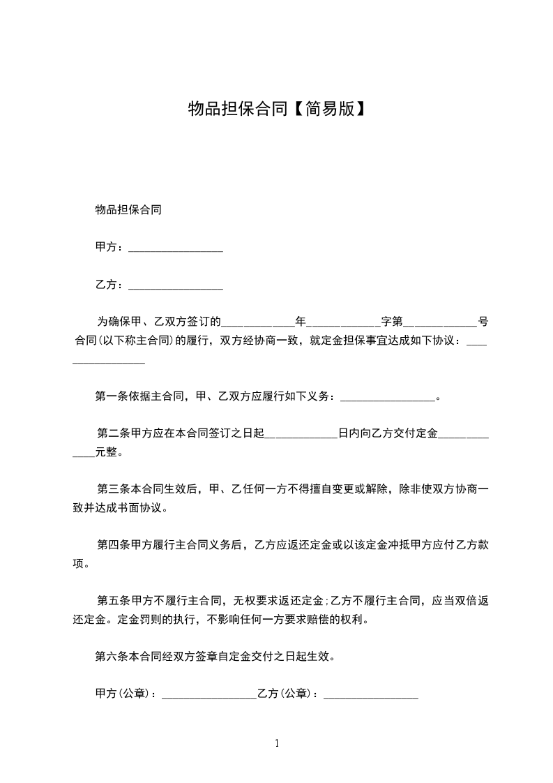 担保保证人(以下简称甲方):______________