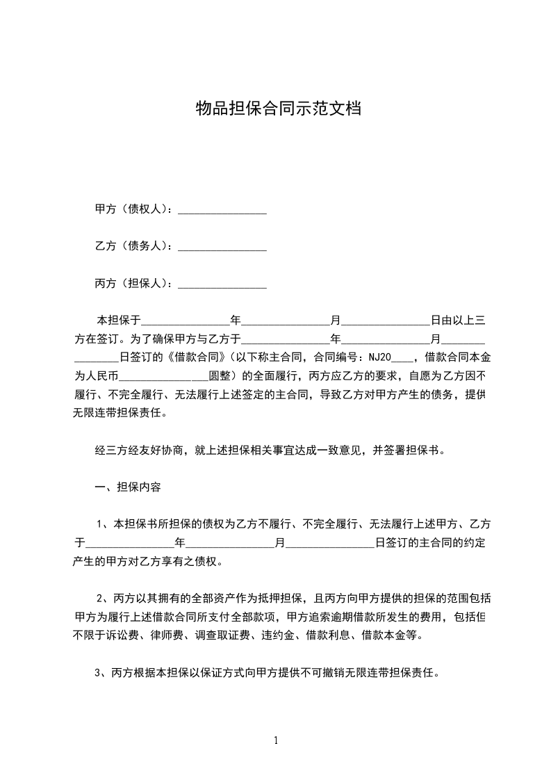 1、如乙方为多人,则乙方中多人各为独立的保证人。