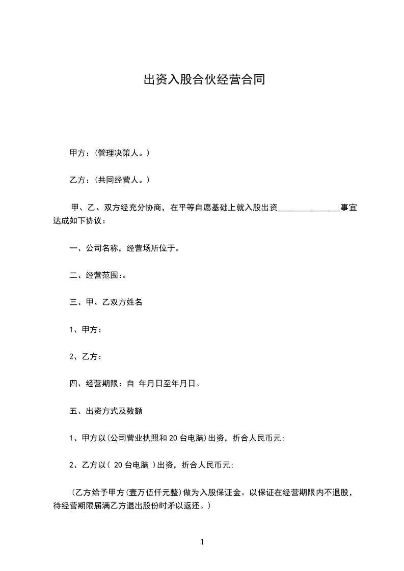 3、合伙期限:本企业的经营期限为_____年,自______年____月____日起计算,至______年____月____日止。合伙企业经营期限届满,经全体合伙人同意,可以延长。
