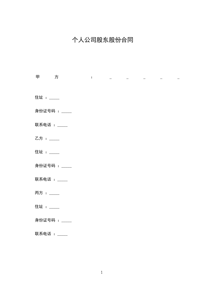 甲、乙、丙方(以下简称三方)共同成立________公司,共同开拓开________市场,自愿签定以下协议,并共同遵守。