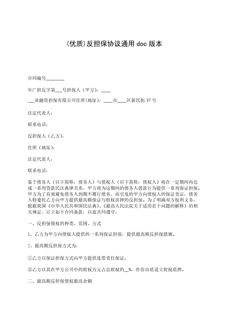 1、乙方为甲方向债权人提供的一系列保证担保,提供最高额反担保措施。