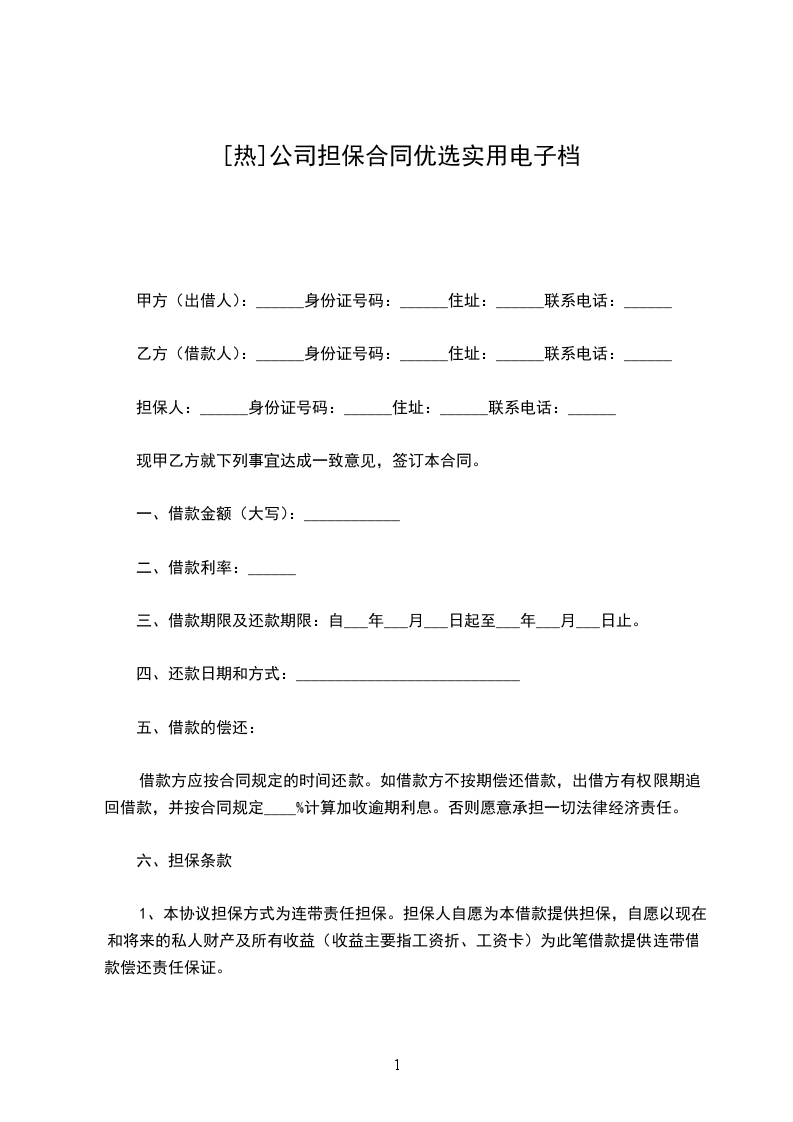 第一条借款金额:贷款方同意借款方申请和担保方的担保提供贷款。