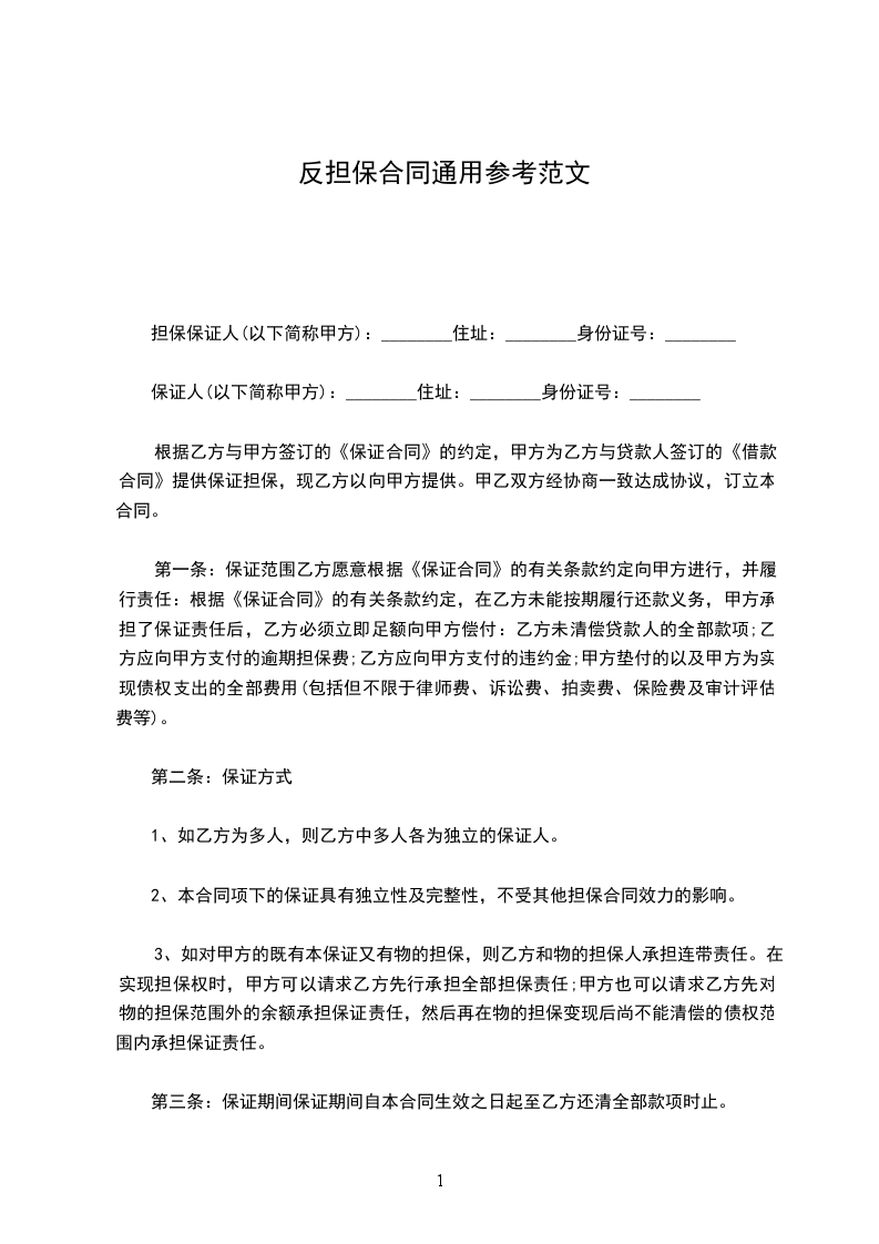 1、保证方式:本合同采用连带责任保证方式。