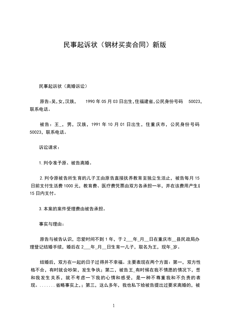 原告与被告认识,恋爱时间不到1年,于2___年_月__日在重庆市__县民政局办理登记结婚手续,婚后在2___年_月__日生育一儿子,取名为王,现年_岁。