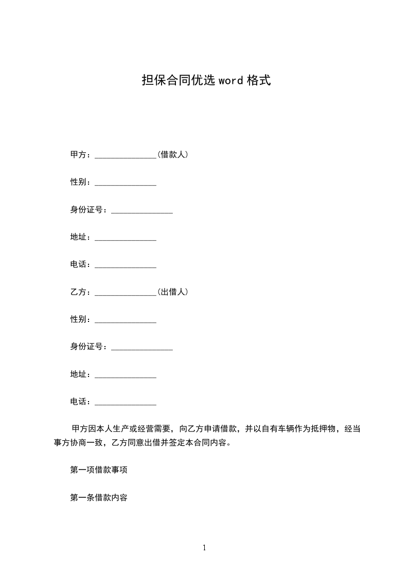 1、乙方向贷款行借款本金元,借款期限个月。甲方愿就上述借款,为乙方向贷款行提供担保,具体担保范围以甲方与贷款行签订的《保证合同》为准。