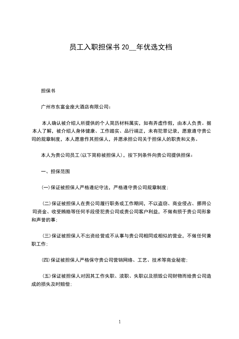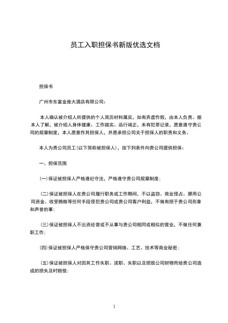 本人为贵公司员工(以下简称被担保人),按下列条件向贵公司提供担保: