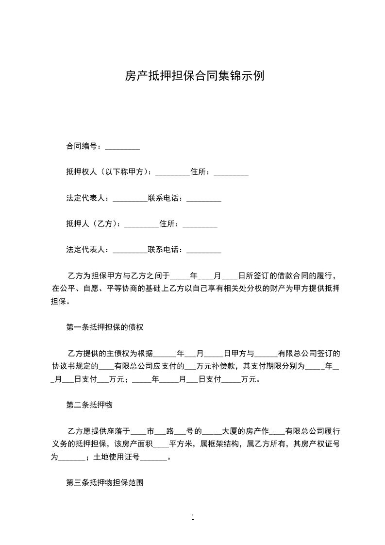 乙方愿提供座落于____市___路___号的_____大厦的房产作____有限总公司履行义务的抵押担保,该房产面积____平方米,属框架结构,属乙方所有,其房产权证号为_______;土地使用证号_______。