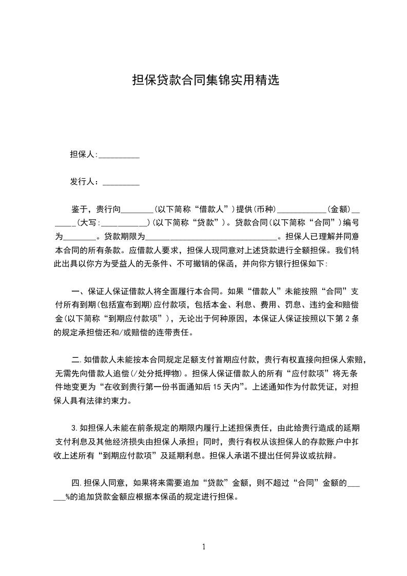 四.担保人同意,如果将来需要追加“贷款”金额,则不超过“合同”金额的______%的追加贷款金额应根据本保函的规定进行担保。