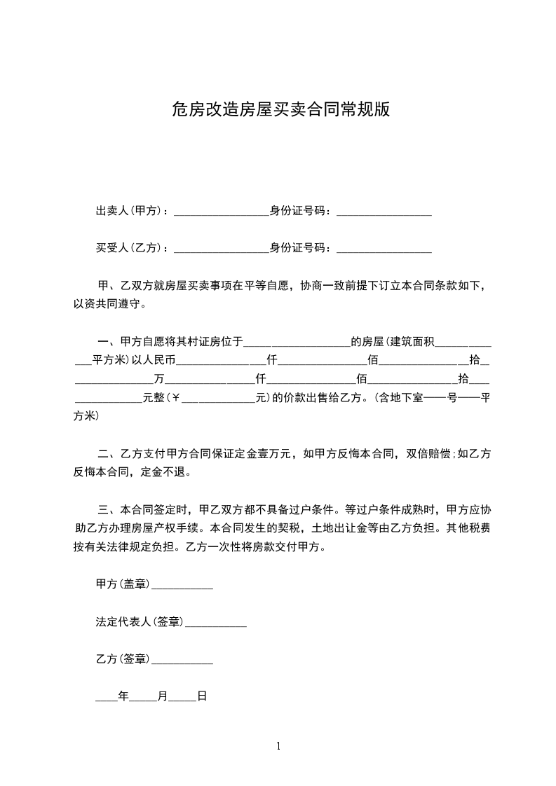 一、甲方自愿将其村证房位于___________________的房屋(建筑面积_____________平方米)以人民币________________仟________________佰________________拾________________万________________仟________________佰________________拾________________元整(¥_____________元)的价款出售给乙方。(含地下室——号——平方米)