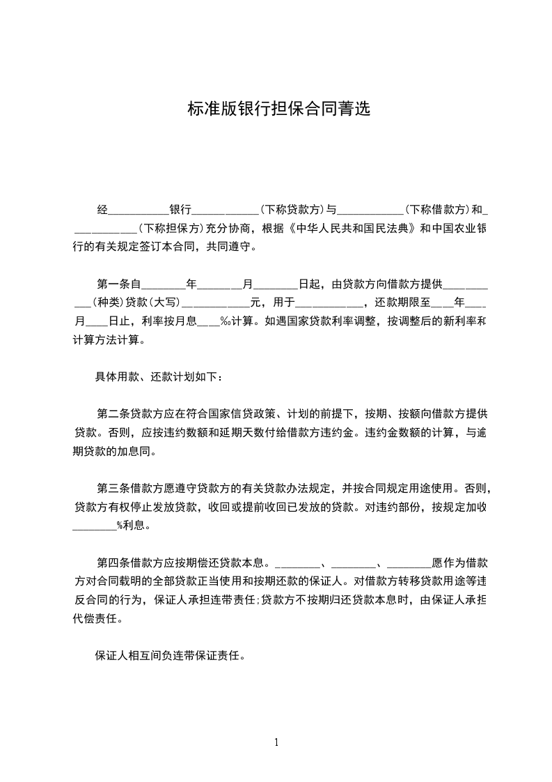 五、丙方机构若发生变更、撤销,丙方应提前_______天书面通知乙方和甲方。丙方如发生合并,由变更后的机构承担连带保证责任;或由甲方和丙方落实为乙方所接受的新的保证人,如丙方破产,甲方应丙方破产前二个月内重新提供保证人。