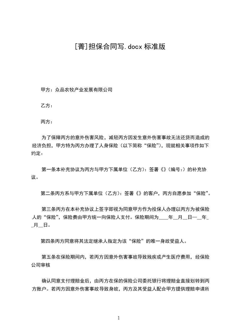 保证人:____________________(以下简称丙方)