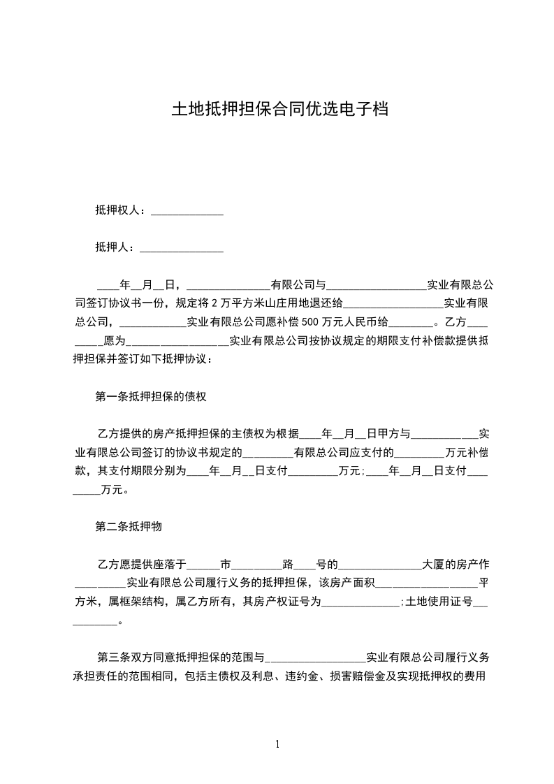 _________年_________月_________日,__________有限公司与__________签订协议书一份,规定_________将2万平方米_________山庄用地退还给_____,____________愿补偿500万元人民币给_________有限公司。乙方_________大厦愿为___________按协议规定的期限支付补偿款提供抵押担保并签订如下抵押协议: