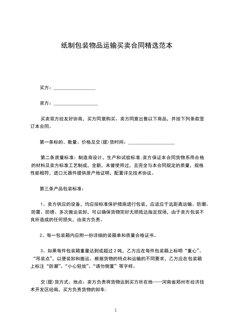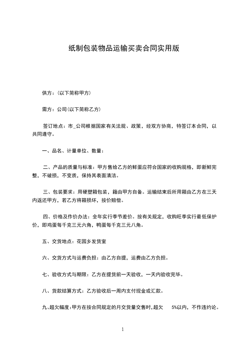 第八条交(提)货方式、地点:____________收
