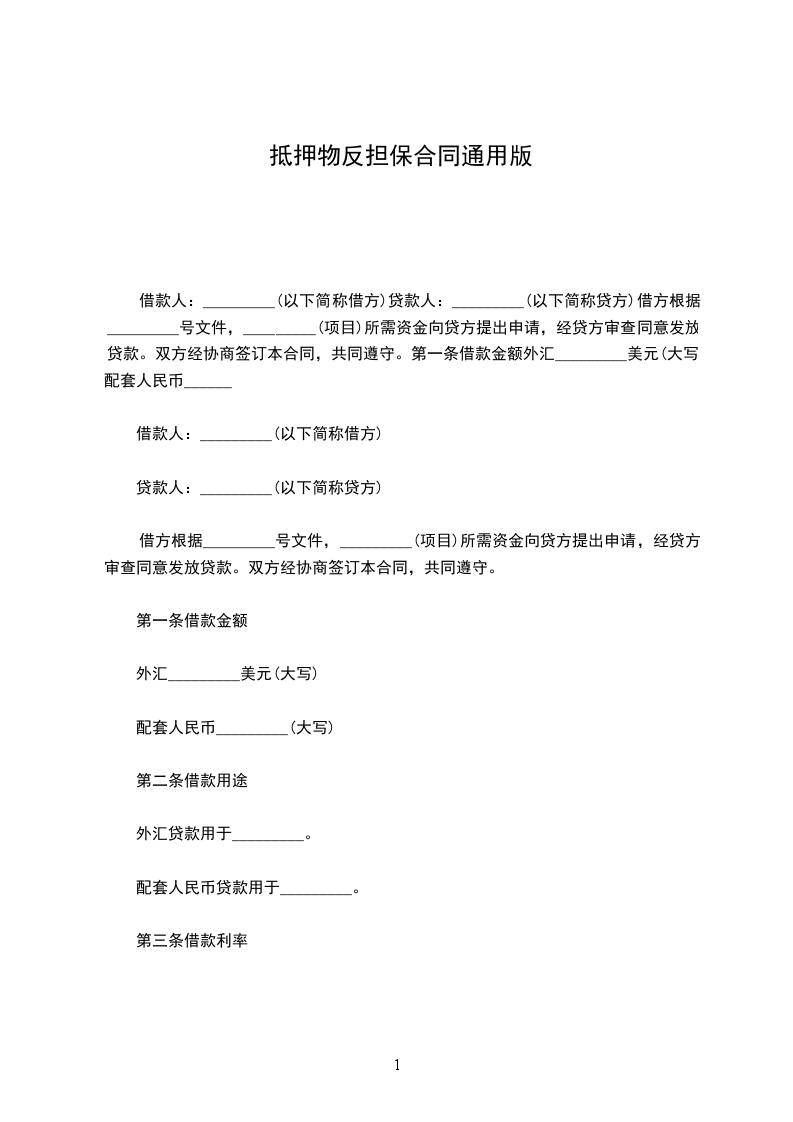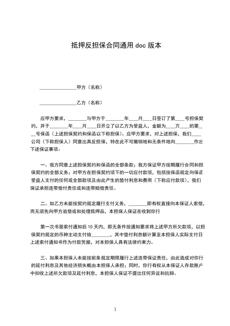 根据(以下简称借款人/委托人)与乙方签署的编号为_的《委托担保协(以下简称债权人/受益人)的贷款(贷款/履约/其他)提供担保,现甲方自愿将其拥有的财产抵押给乙方作为反担保,经甲、乙双方协商同意,订立以下抵押条款。