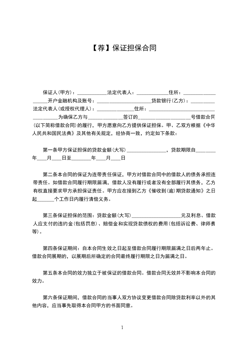 1.保证人保证期间:自本合同生效之日起至本合同项下贷款本息全部还清为止。