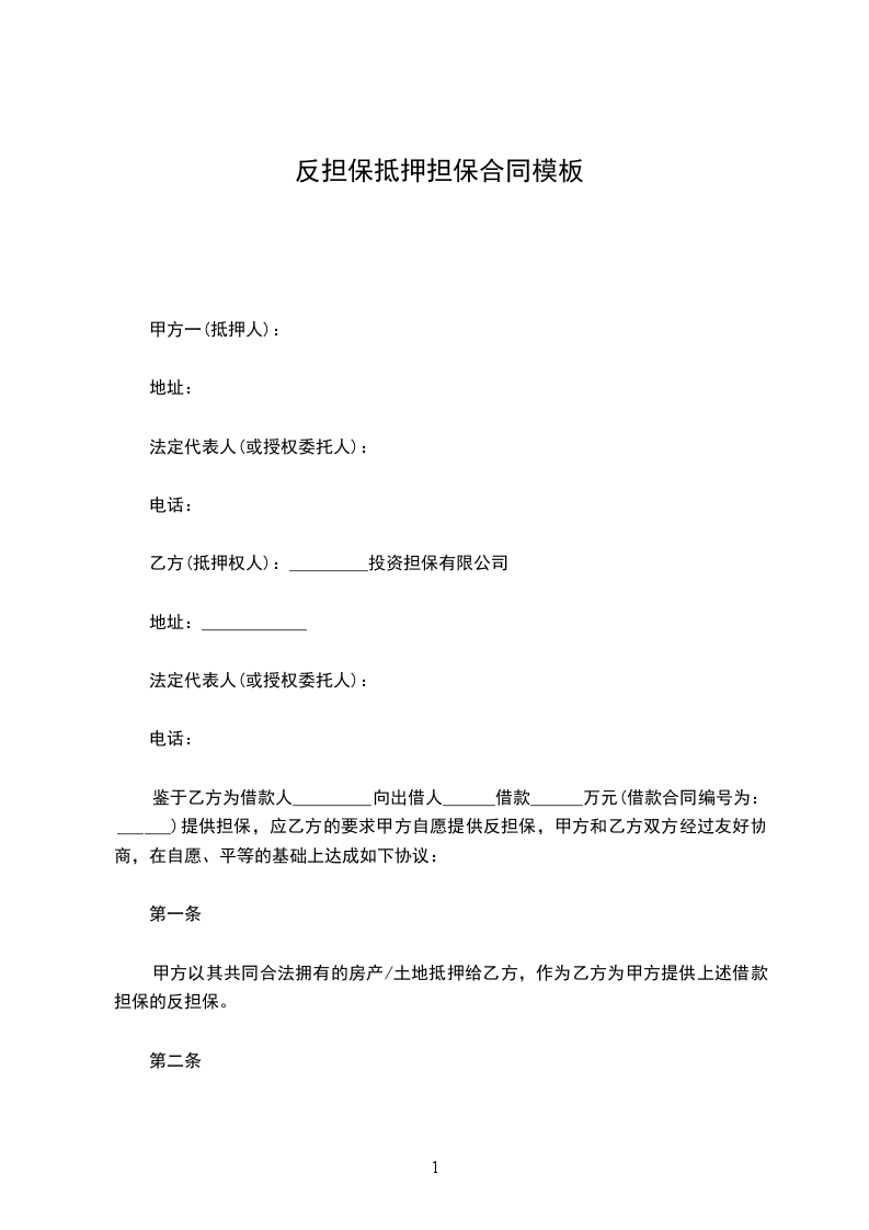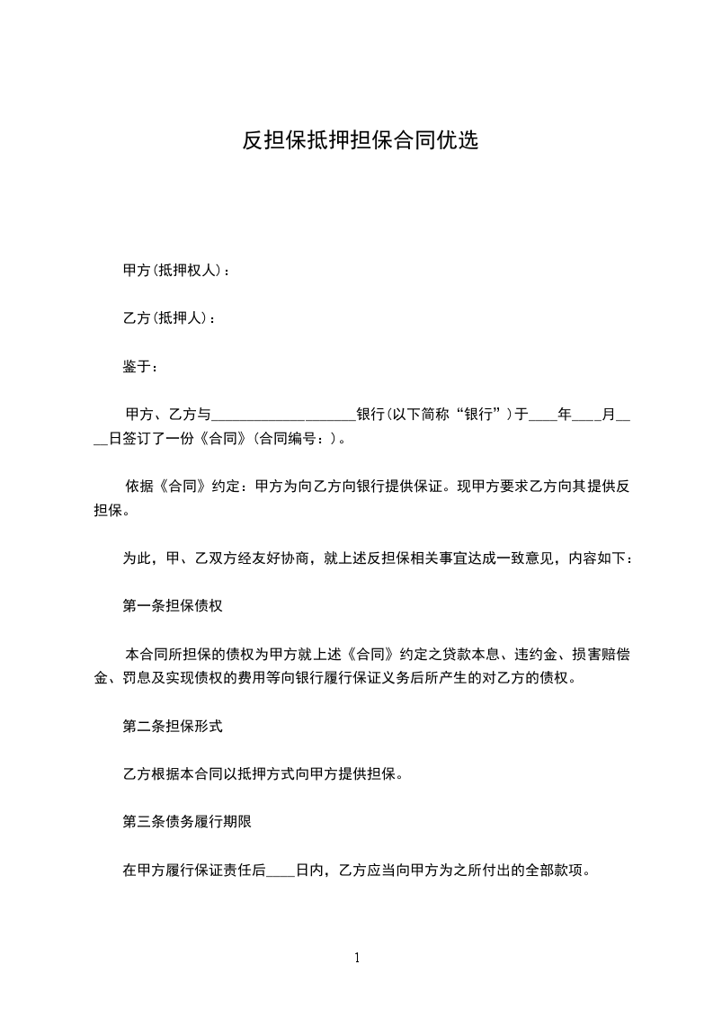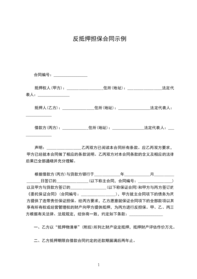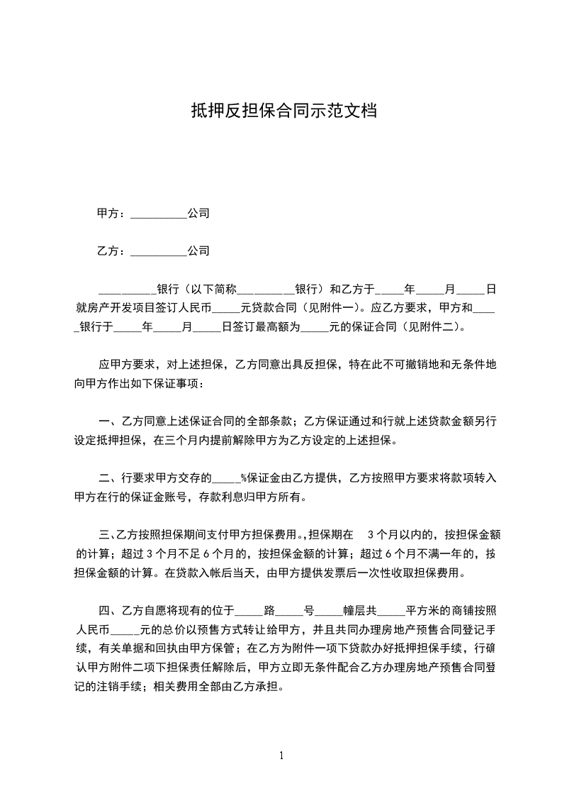 十、本反担保协议一式_____份,甲乙双方个执_____份,公证机关和银行各执一份。
