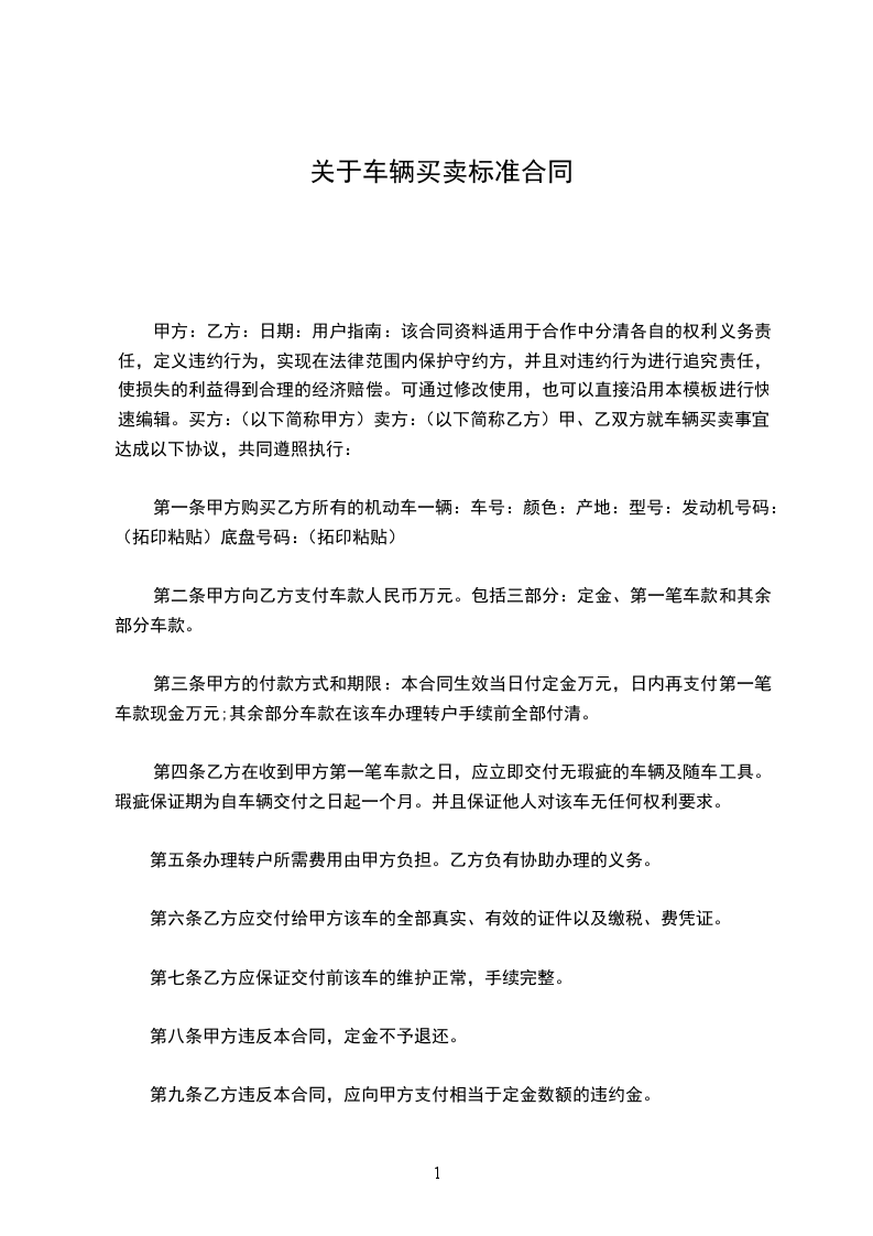 上列当事人就汽车买卖事宜订立合约如下: