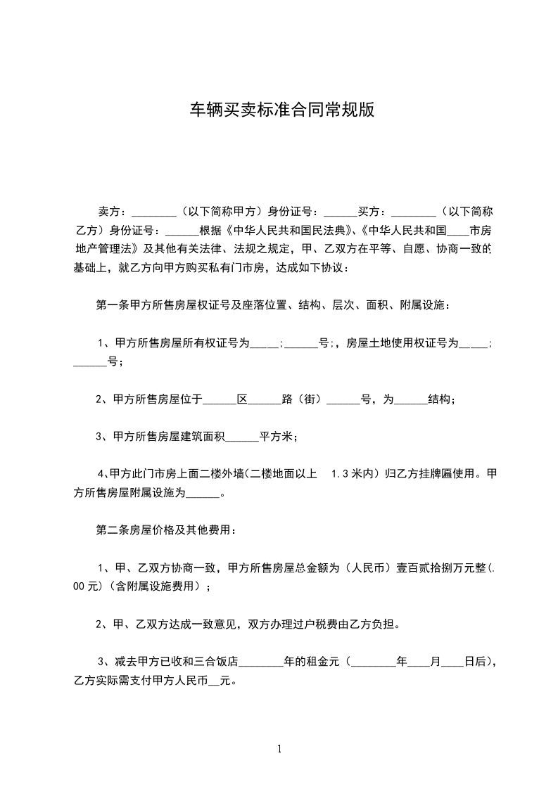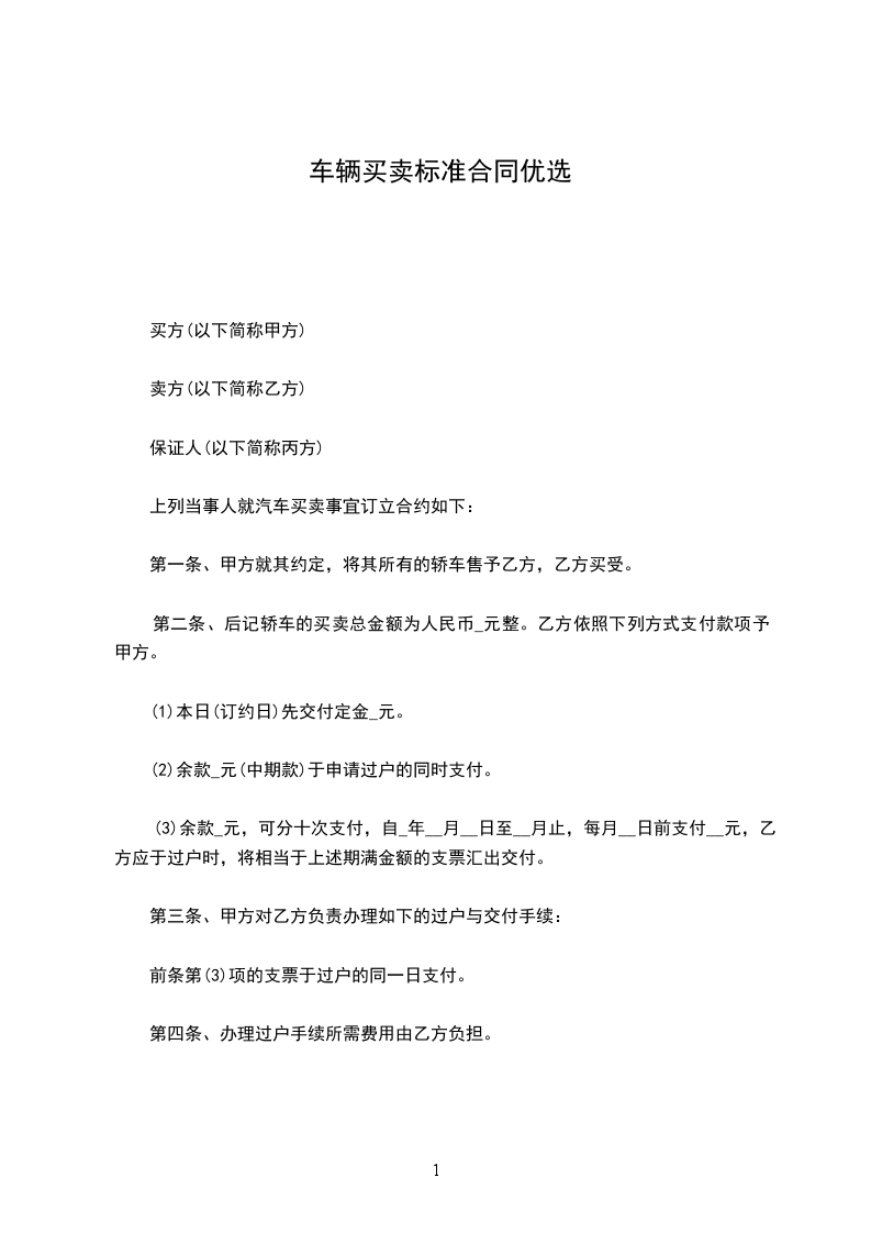 第二条、后记轿车的买卖总金额为人民币_元整。乙方依照下列方式支付款项予甲方。