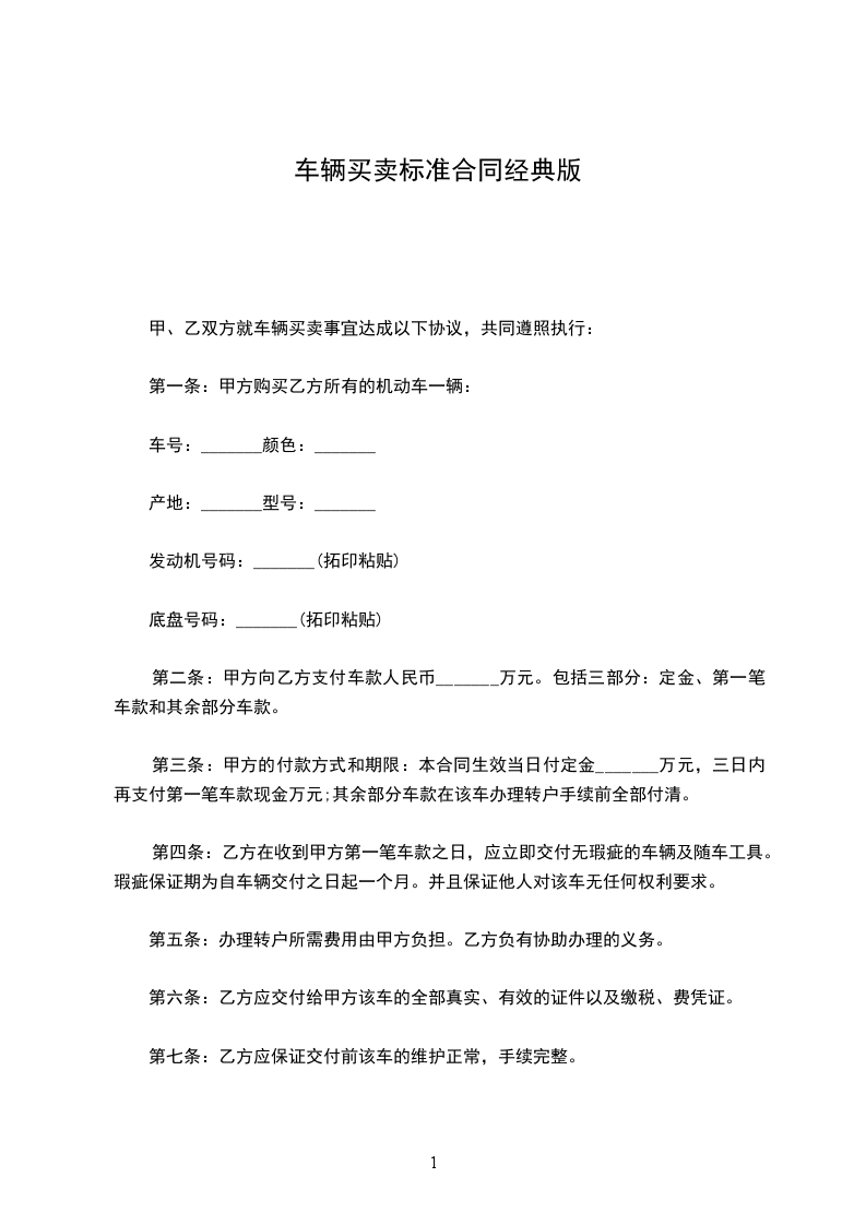第一条、甲方就其约定,将其所有的轿车售予乙方,乙方买受。
