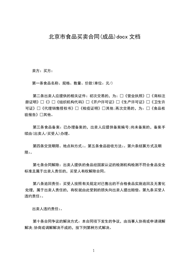 第二条出卖人应提供的相关证件:初次交易的,为:□《营业执照》□《商标注册证明》□《》□《组织机构代码》□《开户许可证》□《生产许可证》□《卫生许可证》□《代理销售授权书》□《检疫证明》□其他;再次交易的,为:□《食品检验报告》□其他。
