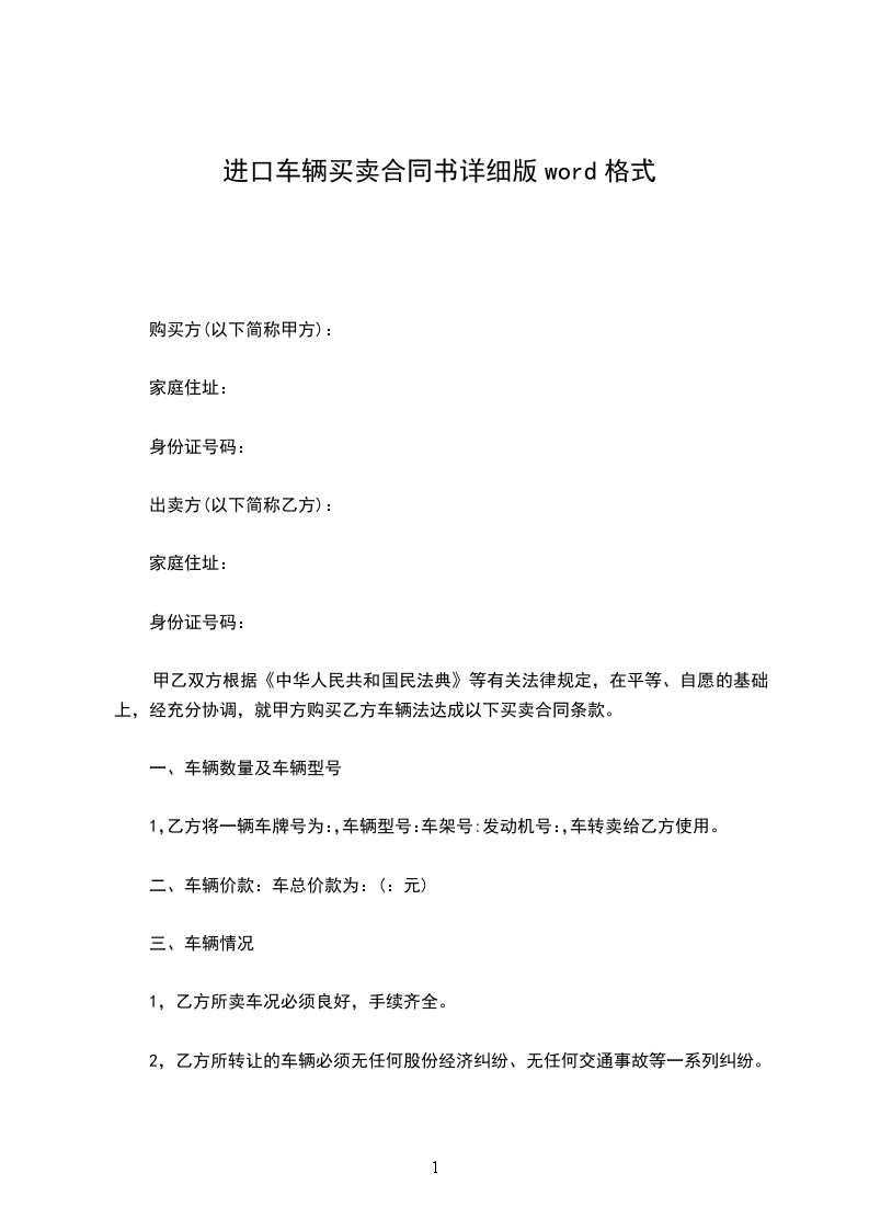 甲乙双方根据《中华人民共和国民法典》等有关法律规定,在平等、自愿的基础上,经充分协调,就甲方购买乙方车辆法达成以下买卖合同条款。