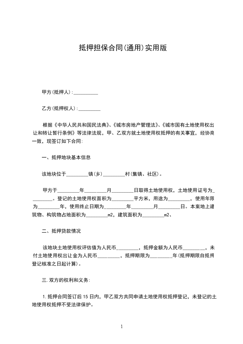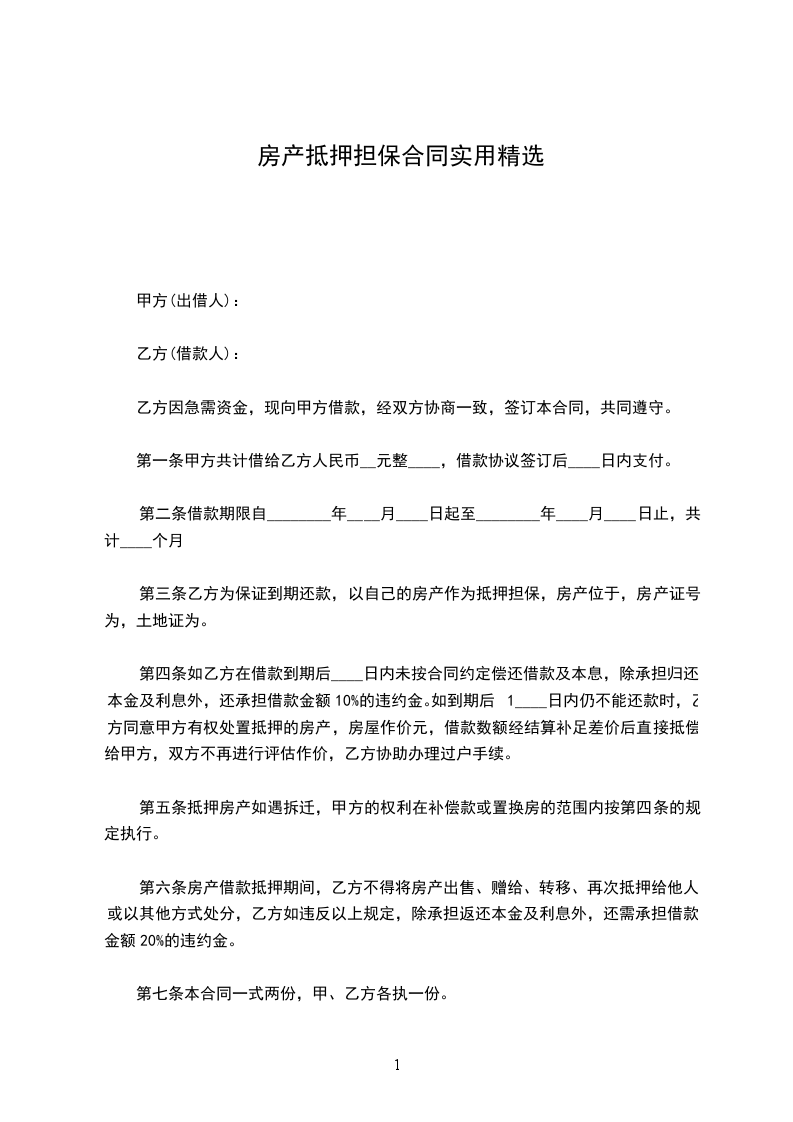 根据《中华人民共和国民法典》及其他相关法律、行政法规,遵循平等、自愿、公平和诚信的原则,乙方以其享有处分权的财产为甲方提供抵押担保。甲方在充分了解抵押物权属状况及使用与管理现状的基础上,同意接受乙方提供的房产抵押。经双方协商一致,签订本合同,以兹共同遵守。
