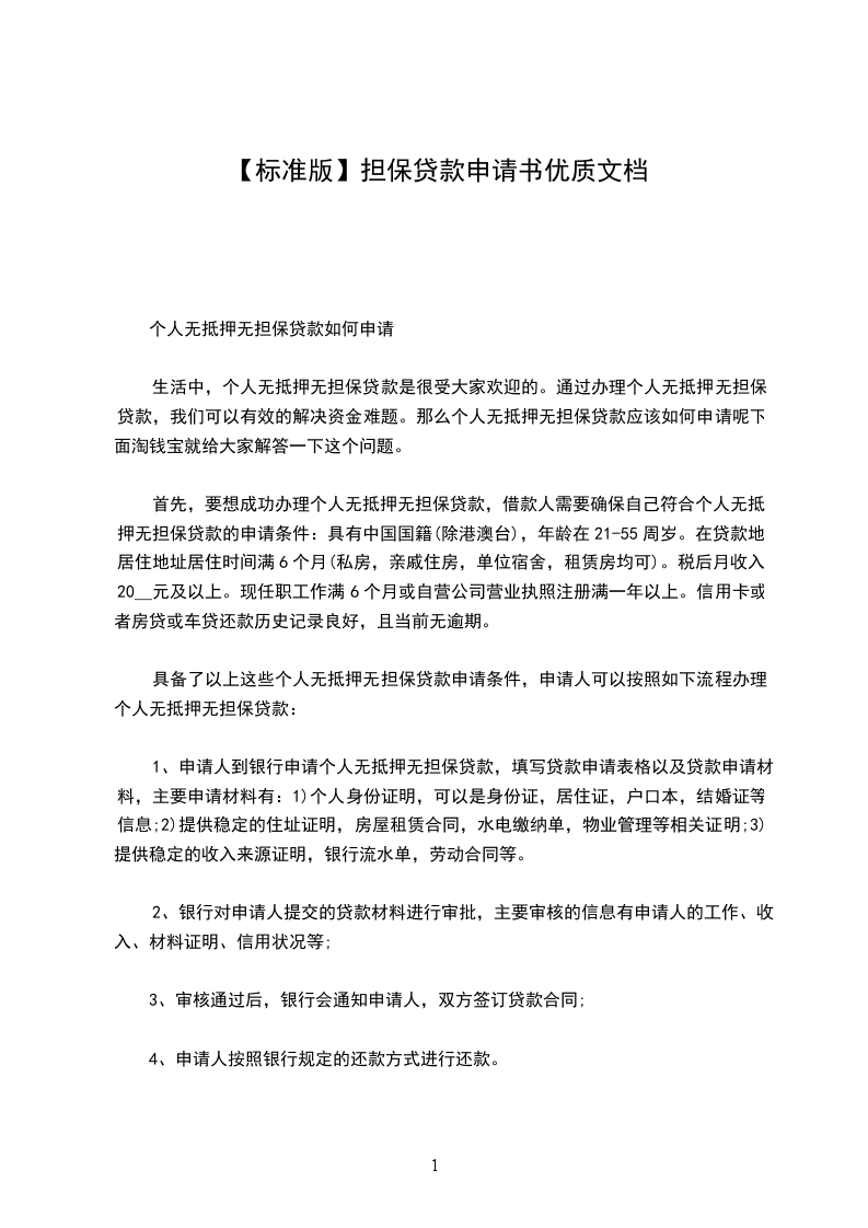 个人无抵押无担保贷款如何申请