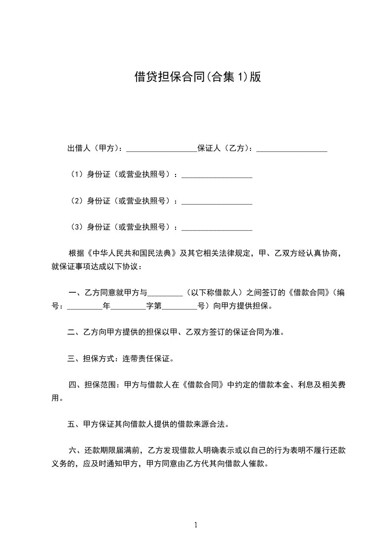 一、乙方同意就甲方与_________(以下称借款人)之间签订的《借款合同》(编号:_________年_________字第_________号)向甲方提供担保。