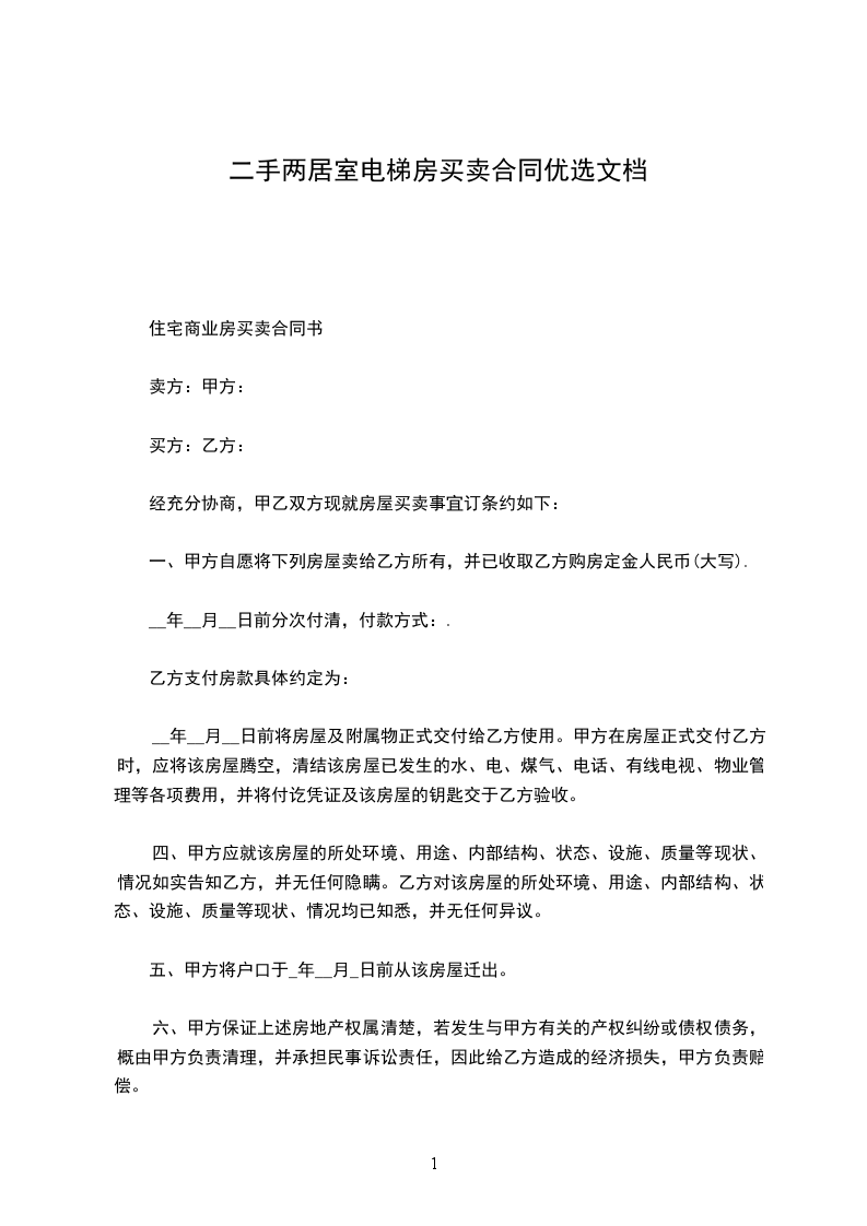 住宅商业房买卖合同书